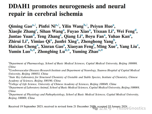 急性缺血性腦卒中(AIS)是導致人類死亡和傷殘的重要因素,解析其內源性的修復機制是近年AIS治療的熱點課題之一。先期研究表明,二甲基精氨酸二甲胺水解酶1(DDAH1)在多種疾病中,如心血管事件、非脂肪性肝病變中可作為應激性因子產生保護作用。但其對AIS作用的報道較少。僅在動物實驗模型上驗證了DDAH